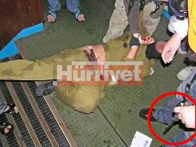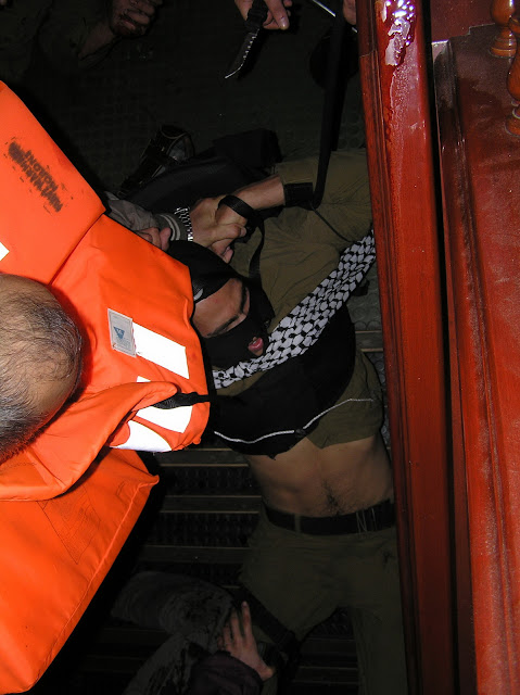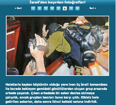 Però en això de la manipulació, tens raó. La darrera foto, per exemple, va ser publicada al web de la organització del vaixell, IHH, però l'agència Reuters va tallar la part de dalt, on es veu el ganivet (que no és de cuina, és un ganivet militar)