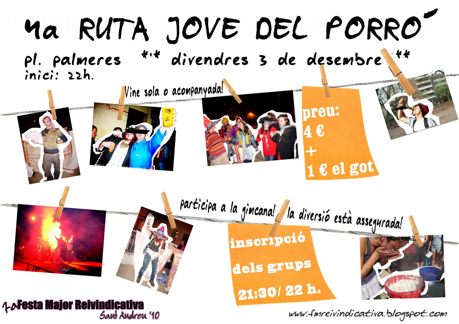 Resum: Ginkana festiva amb el porró de vi com a protagonista. Inscripció dels grups a les 21:30h. Inici de la ginkana a les 22h. Vine sola o acompanyada! Temàtica: Coses que passen al món que podrien passar a St.Andreu.