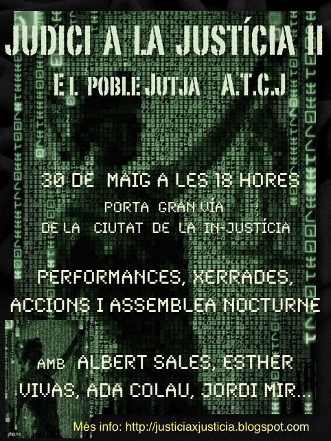Amb un any i set mesos d'experiència a les nostres esquenes, de lluita social i laboral autogestionada dins la ciutat de la in-Justícia, la ATCJ, l'Assemblea de Treballadores i Treballadors de la Ciutat de la Justícia, i cada cop fent més xarxa amb altres col·lectius en lluita ( Coordinadora Laboral15M i suport mutu, Fotomovimiento, La PAH, iai@flautes, 15M Hospitalet, 15M Zona franca...) i amb el suport de persones que s'apropen, que ens animen a no rendir-nos, perquè ja ha arribat l'hora de l'autenticitat, de dir prou i que el poble jutgi.