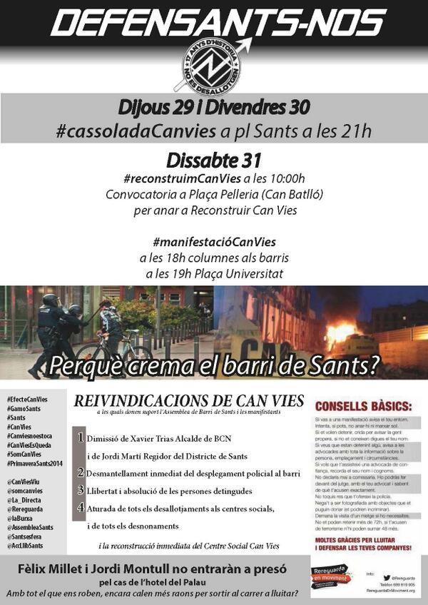 Y otra cosa que percibo: no se trata de can vies, ni de la lucha anticapitalista ni contra los corruptos, es una excusa de unos pocos para liarla porque les gusta la violencia (como al mismo sistema) y fastidia el trabajo de lXs compXs que dan el callo todo el año en sus proyectos sociales.