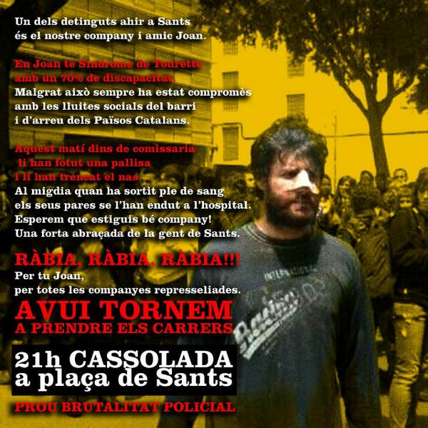 "Y otra cosa que percibo: no se trata de can vies, ni de la lucha anticapitalista ni contra los corruptos, es una excusa de unos pocos para liarla porque les gusta la violencia (como al mismo sistema) y fastidia el trabajo de lXs compXs que dan el callo todo el año en sus proyectos sociales."