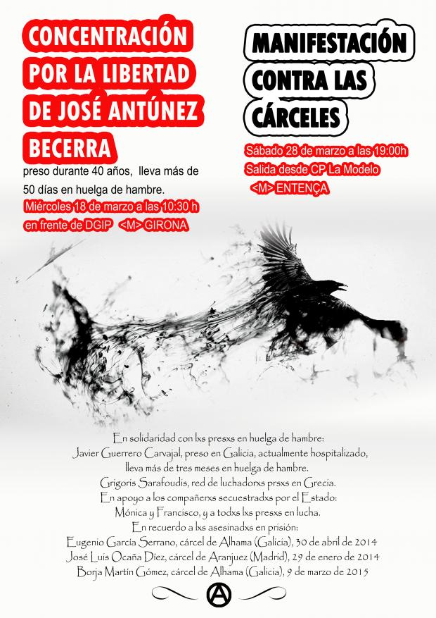 Miércoles 18 concentración frente a DGIP en solidaridad con Antunez Becerra. Sábado 28 manifestación contra las cárceles.